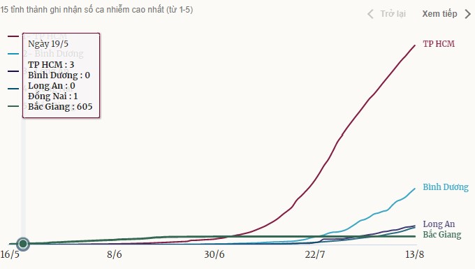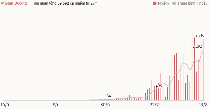 Chiều 13/8, ghi nhận 275 ca tử vong (4814-5088) tại TP HCM (223), Bình Dương (25), Tiền Giang (, Đồng Tháp (4), Bến Tre (3), Bình Thuận (3), Đồng Nai (3), Long An (3), Khánh Hòa (2 ), Cần Thơ (1).