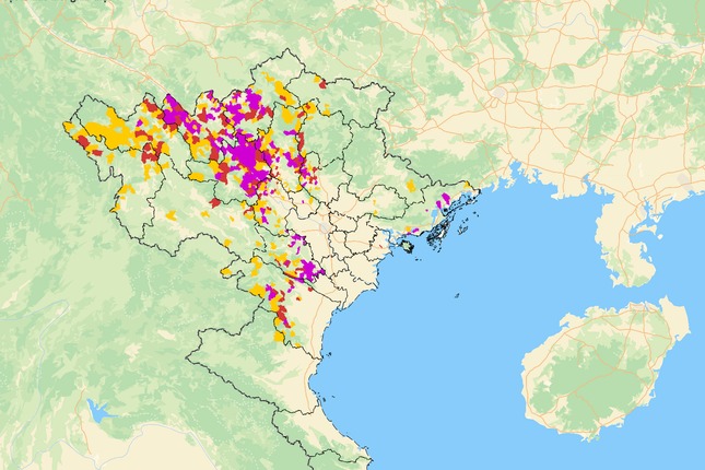 Sáng nay, Hệ thống cảnh báo lũ quét, sạt lở đất tiếp tục ghi nhận mức cảnh báo tím (mức nguy hiểm nhất) ở hầu hết các tỉnh vùng núi phía Bắc như Lào Cai, Yên Bái, Hà Giang, Tuyên Quang, Cao Bằng. Nhiều địa phương khác ở miền Bắc ghi nhận mức cảnh báo vàng như Hà Nội, Thanh Hoá, Điện Biên, Lai Châu, Bắc Kạn.