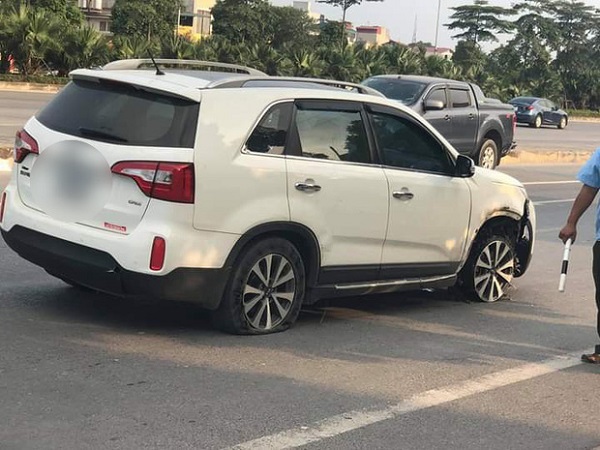 Cũng liên quan đến sự việc, tại hiện trường, lốp trước phía bên trái của xe ô tô bị vò nát, còn tài xế có biểu hiện của việc sử dụng rượu bia.
