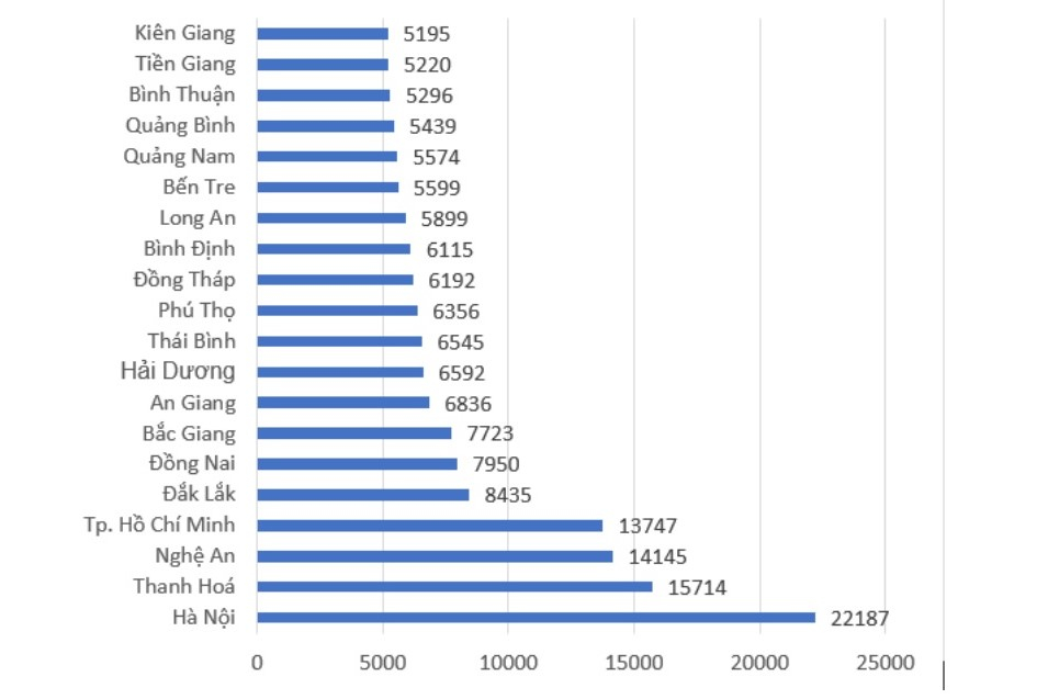 20 địa phương có số thí sinh không đăng ký xét tuyển nhiều nhất: