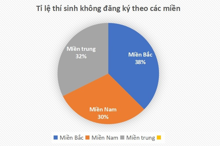 Tỷ lệ thí sinh không đăng ký xét tuyển theo các miền trên cả nước: