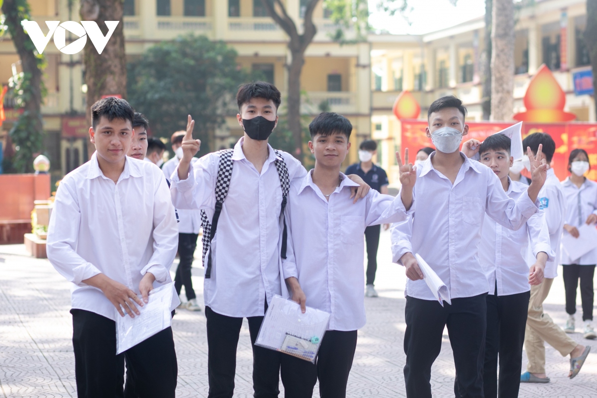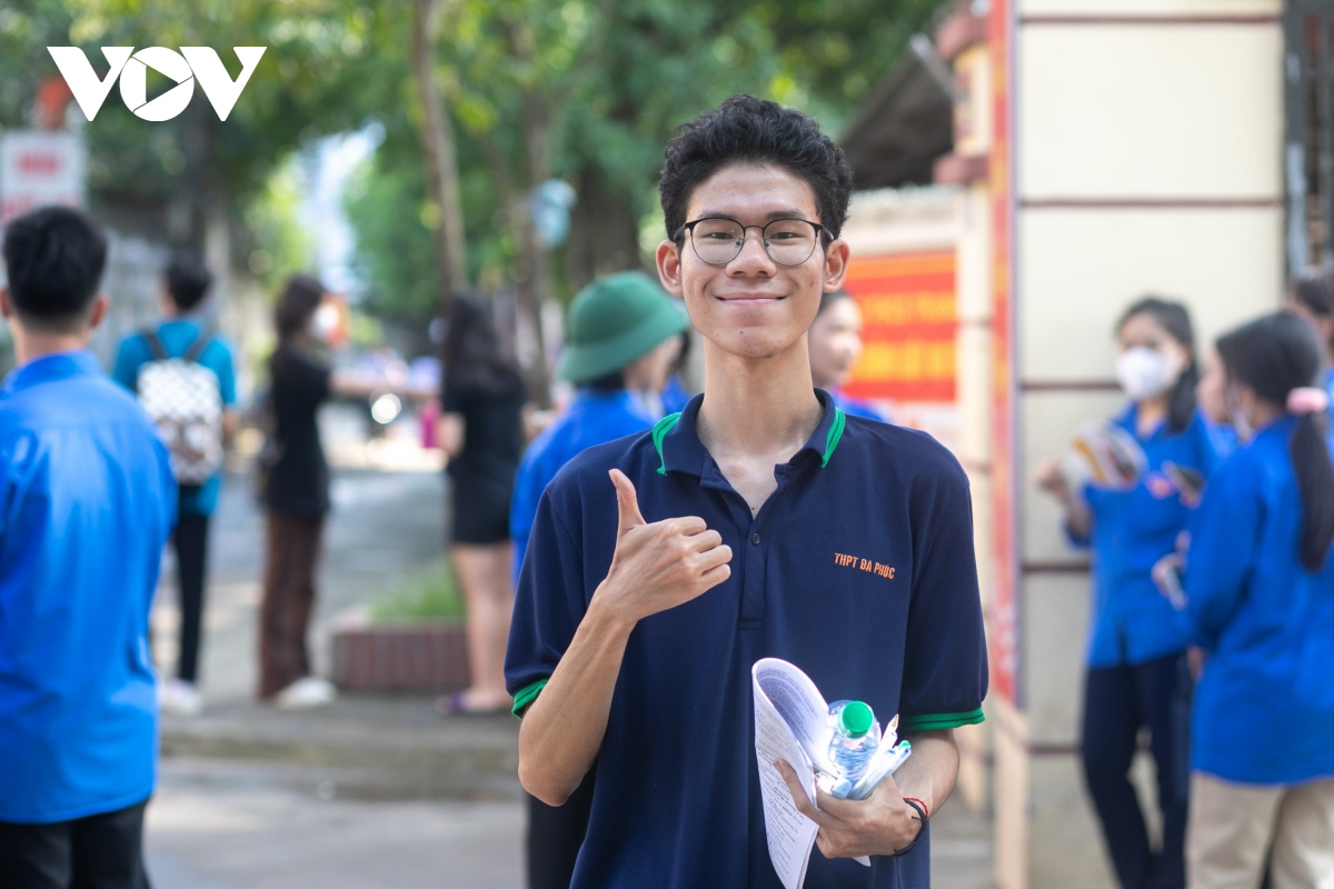 Em Dương Hoàng Tiến Đạt, trường THPT Kim Anh (huyện Sóc Sơn, Hà Nội) hào hứng cho biết, sau khi tiếng trống vang lên báo hiệu giờ thi kết thúc, em thực sự rất vui vì đã hoàn thành chặng đường của 12 năm học. Chưa biết kết quả sẽ ra sao nhưng tâm trạng của em lúc này rất thoải mái vì tạm thời không còn áp lực thi cử nữa.