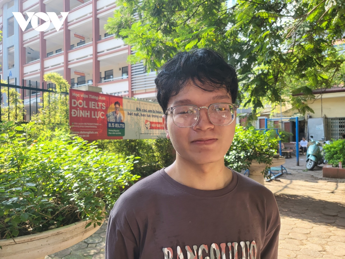 Em Trịnh Nam Phong (Trường THPT Việt Nam - Ba Lan, quận Hoàng Mai) bày tỏ, bài thi Ngoại ngữ em đã làm khá tốt vì sau khi thi xong, em kiểm tra và so kết quả với các bạn thấy trùng khớp nhiều. Em hy vọng bài thi có thể đạt trên 8 điểm,