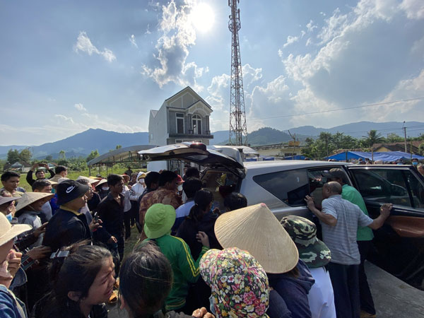 Mẹ của T., chị Đinh Thị A Ngát (40 tuổi) cũng bật dậy, yếu ớt lao về phía chiếc ô tô vừa đỗ trước cổng nhà. 4 ngày không ngủ, ngóng chờ con về từng giây từng phút cũng là thời gian chị Ngát sống trong niềm đau cùng cực. Khi thấy chiếc xe, chị đã ngã quỵ, phải nhờ người thân dìu đỡ.