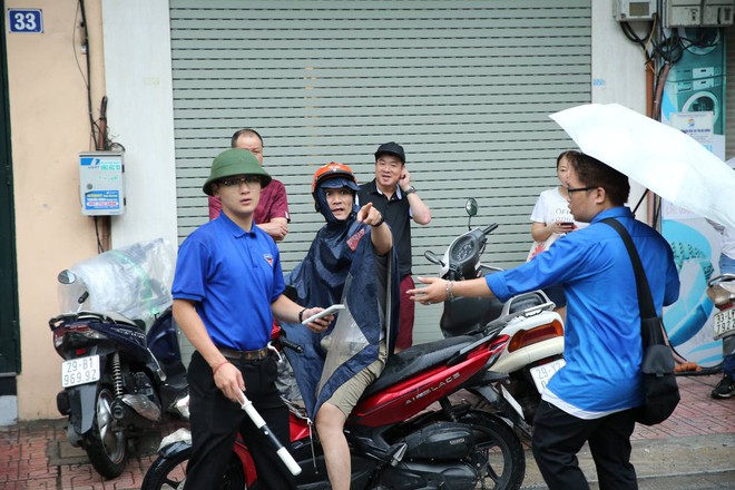 Trong khi đó, tại điểm thi trường THCS Phan Chu Trinh (Ba Đình) lại có một vài em để quên máy tính. Những trường hợp này cũng được lực lượng tình nguyện viên hỗ trợ đưa vào phòng thi kịp thời.