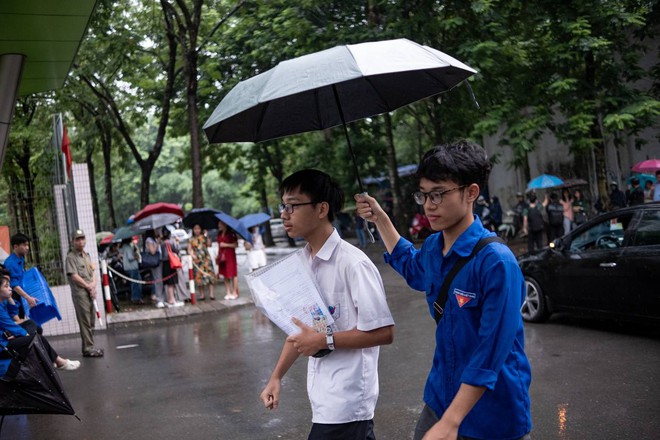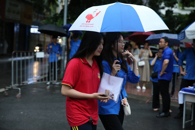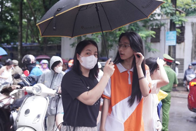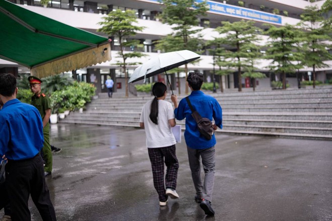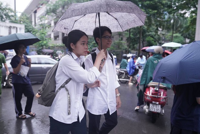 Thí sinh Hà Nội bước vào buổi thi cuối cùng giữa thời tiết không quá thuận lợi. Từ sáng sớm, trời đã đổ mưa nhỏ khiến các thí sinh và phụ huynh gặp không ít khó khăn trong quá trình di chuyển đến điểm thi.