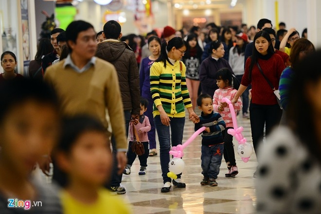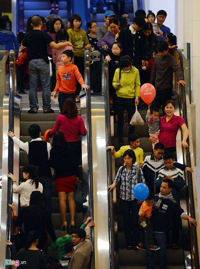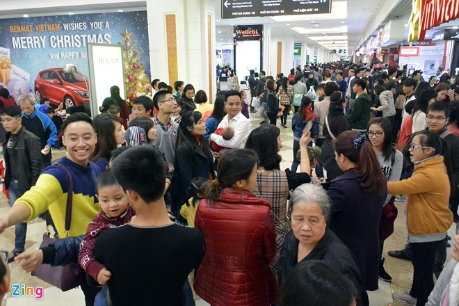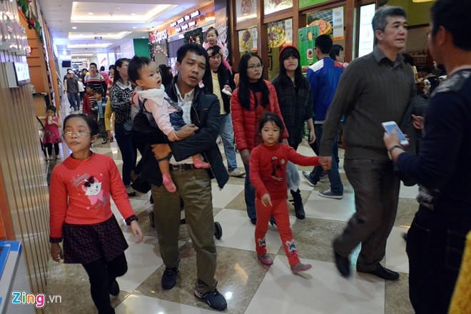 Nhiều TTTM lớn tại Hà Nội đã quá tải bởi lượng người đổ về đi chơi Tết dương lịch. Nhiều người đã phải chen chúc, vạ vật khi đi chơi trong ngày đầu năm 2015.
