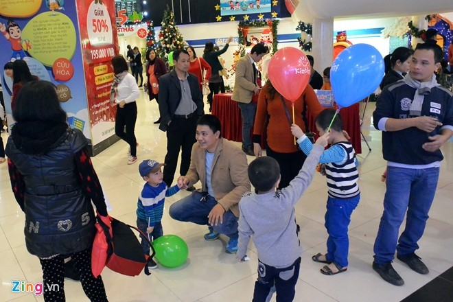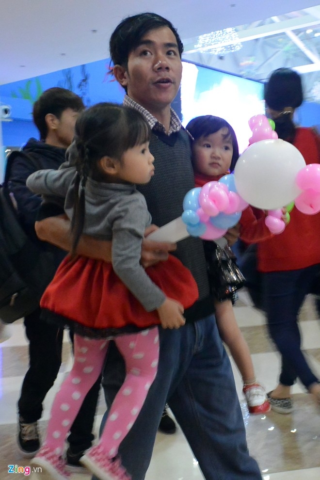 Nhiều em bé được cha mẹ đưa đi chơi ở trung tâm thương mại Royal City. |