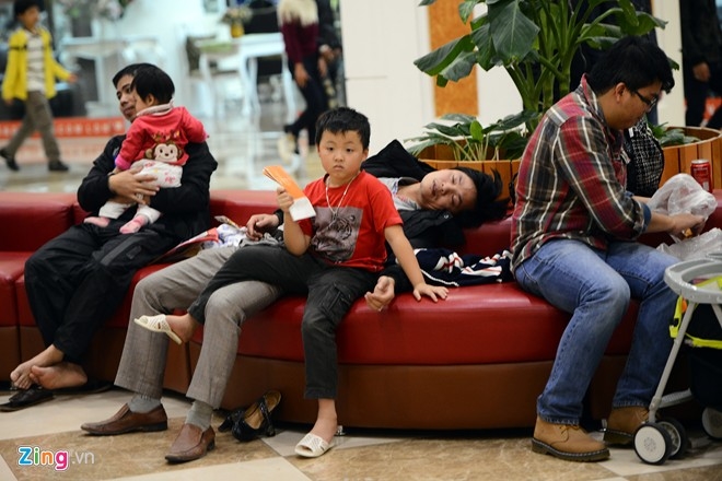 Không ít người mệt mỏi nằm ngủ vạ vật ngay giữa trung tâm thương mại lớn. |