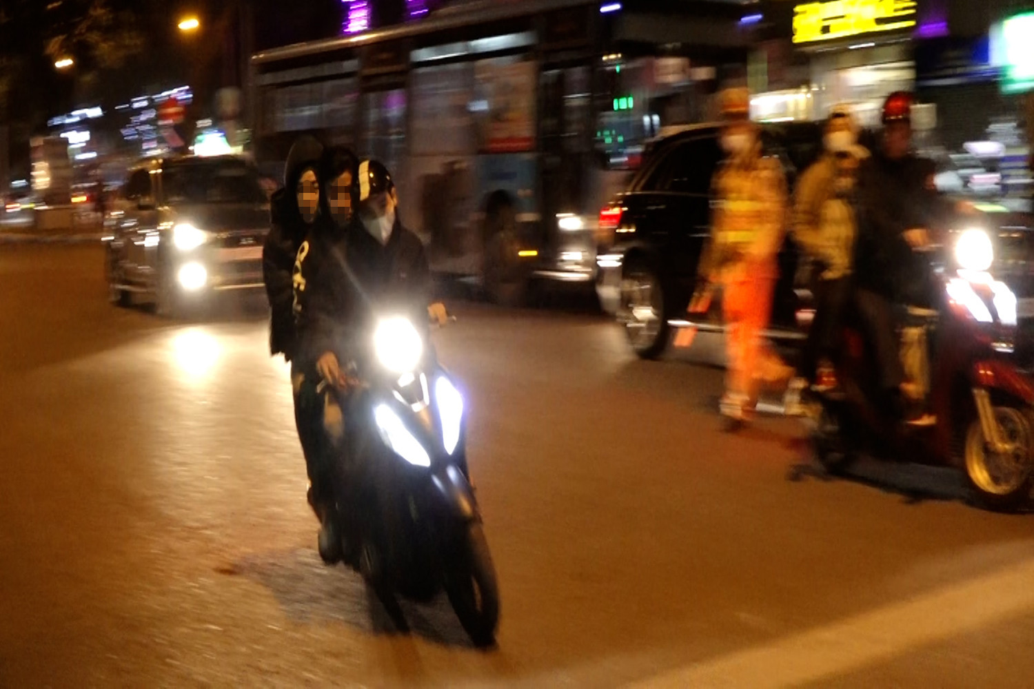 Cũng theo ghi nhận của PV VietNamNet, trong tối cùng ngày, Tổ công tác Y9/141 hóa trang đã phát hiện, bàn giao cho Công an phường sở tại nhiều trường hợp thanh thiếu niên điều khiển xe máy lạng lách, đánh võng, nẹt pô...