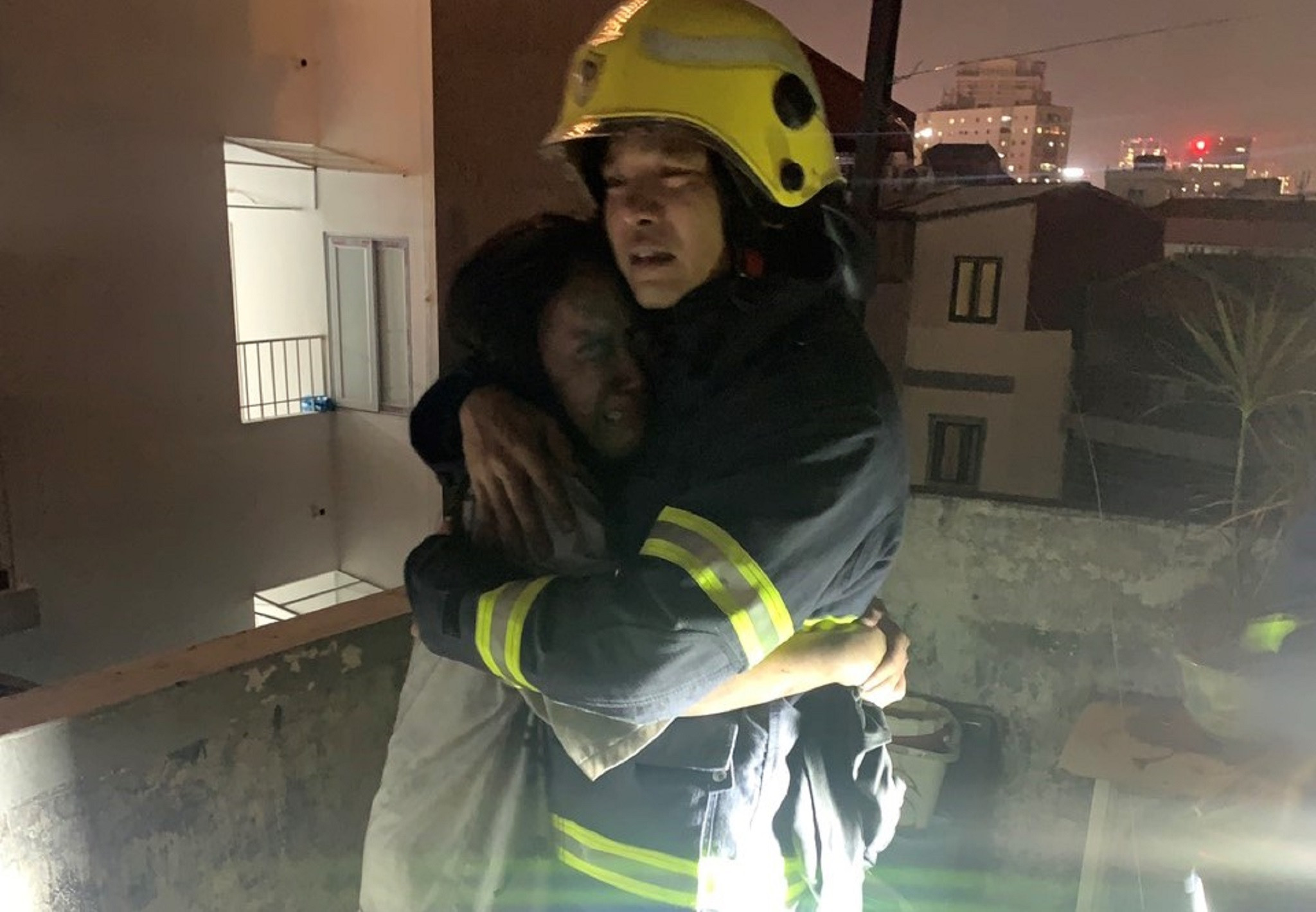 Hình ảnh một cô gái trẻ, mặt mũi lấm lem muội khói ôm chặt người lính cứu hỏa khóc nức nở nhanh chóng được cộng đồng mạng chia sẻ.