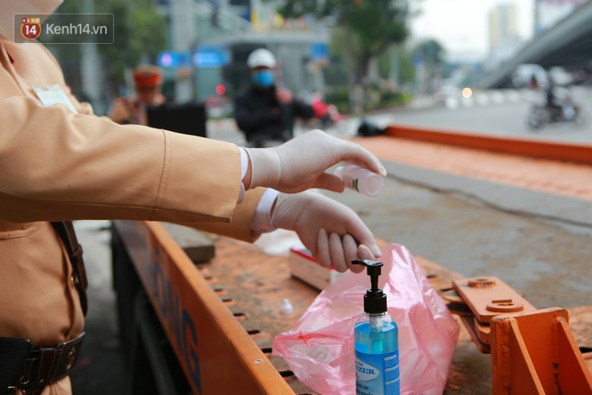 Cụ thể, cán bộ CSGT khi thi hành nhiệm vụ sẽ đeo khẩu trang cá nhân, rửa tay bằng nước sát khuẩn, phải đeo bao tay, dùng riêng ống thổi cho từng người, sát khuẩn thiết bị đo.