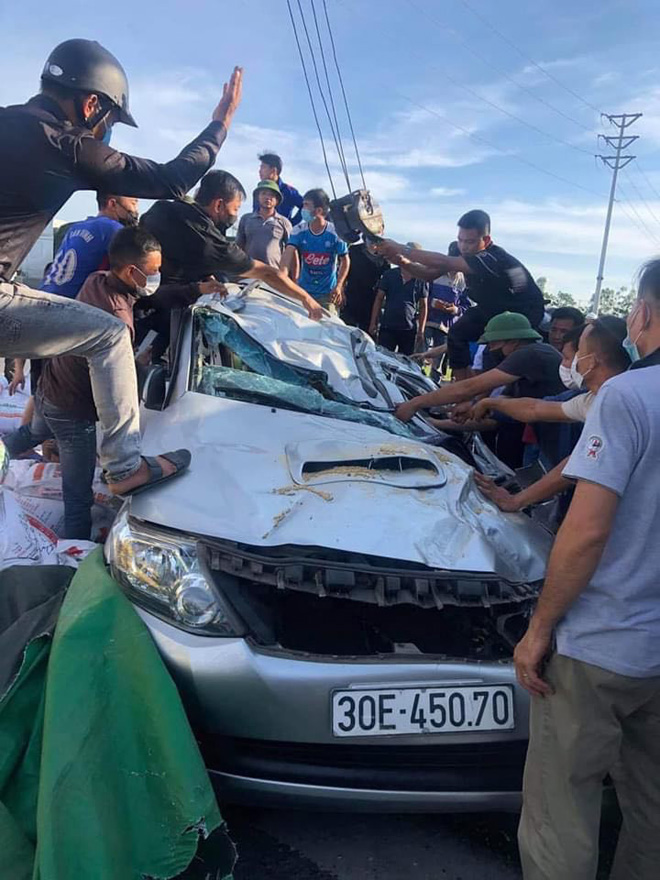 Xe tải chở cám sau đó đâm vào ô tô con do anh Đ.K.H.T (45 tuổi, ở Chương Mỹ, Hà Nội) cầm lái, chở theo 4 người khác.