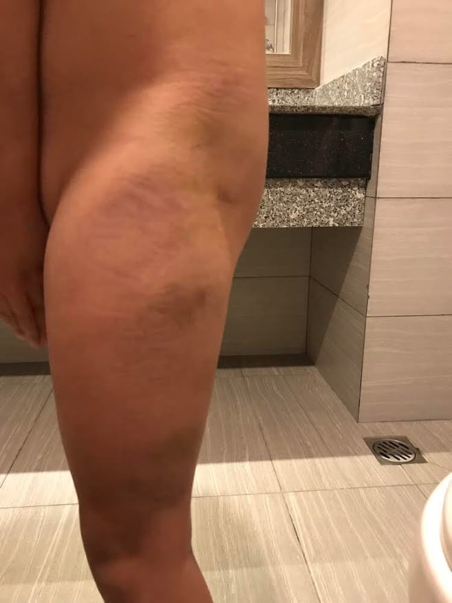Bé K. bị những vết thương bầm tím trên người mà trước đó chị Y. đã phát hiện chụp ảnh lại (hình ảnh do chị Y. cung cấp).