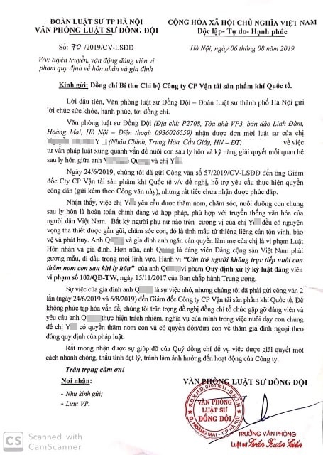Bức xúc về vấn đề này, trong tháng 6/2019, chị Y. đã nộp đơn mời văn phòng luật sư Đồng Đội (TP.Hà Nội) để được tư vấn, hỗ trợ pháp luật về vấn đề vấn đề nuôi con sau khi ly hôn.