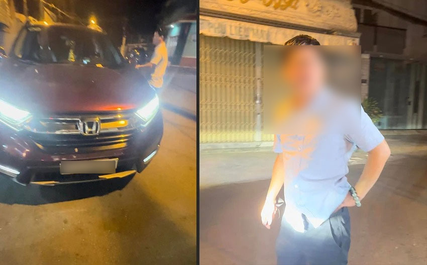 Cô gái sau đó lùi xe máy lại để tài xế lái ôtô đi qua nhưng người này mở cửa xuống xe chửi bới. Theo chị Vân, thấy người đàn ông dấu hiệu say xỉn nên muốn giữ ôtô lại, gọi công an đến làm việc.