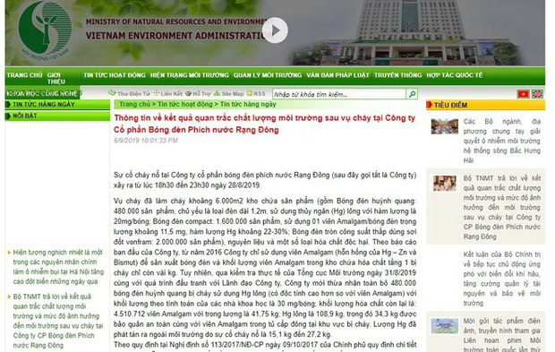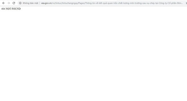 Sau hơn 3 ngày công khai, thông tin về kết quả quan trắc chất lượng môi trường sau vụ cháy tại Công ty Cổ phần Bóng đèn Phích nước Rạng Đông trên website của Tổng Cục Môi trường (Bộ TN-MT) ở địa chỉ www.vea.gov.vn đã không còn truy cập được.