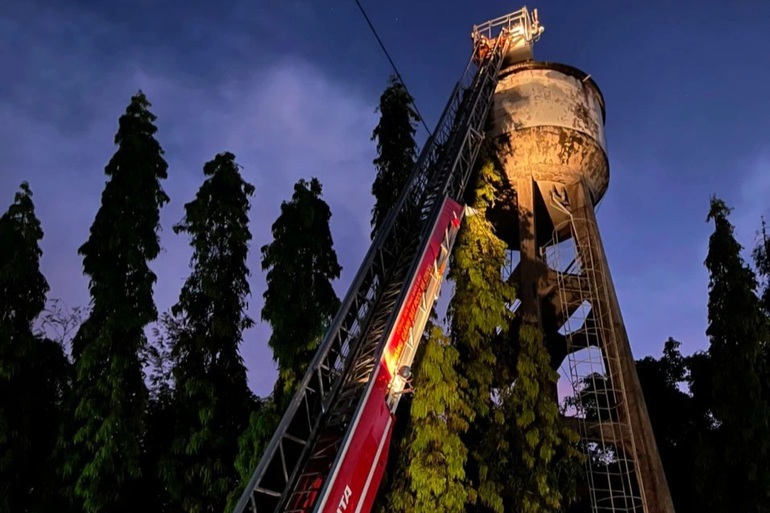 Trước đó, khoảng 4h40’ sáng cùng ngày, lực lượng PCCC nhận được tin báo về việc có một phụ nữ bị tâm thần trèo lên tháp nước cao 25m. Ngay lập tức, các chiến sĩ Đội CC-CNCH số 1 đã nhanh chóng đến hiện trường, triển khai các phương án cứu hộ.