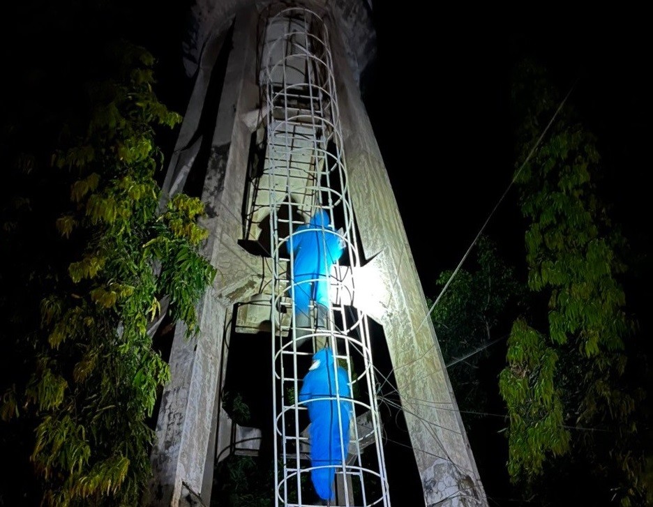 Qua xác minh cho thấy, người phụ nữ nói trên là N.T.D (25 tuổi, trú tại huyện Krông Năng, tỉnh Đắk Lắk) đang mang thai 5 tuần, mắc Covid-19 và bị bệnh tâm thần. Trước tình hình này, các chiến sĩ đã trang bị đồ bảo hộ để phòng lây nhiễm Covid-19 và tiến hành trèo lên tháp nước.