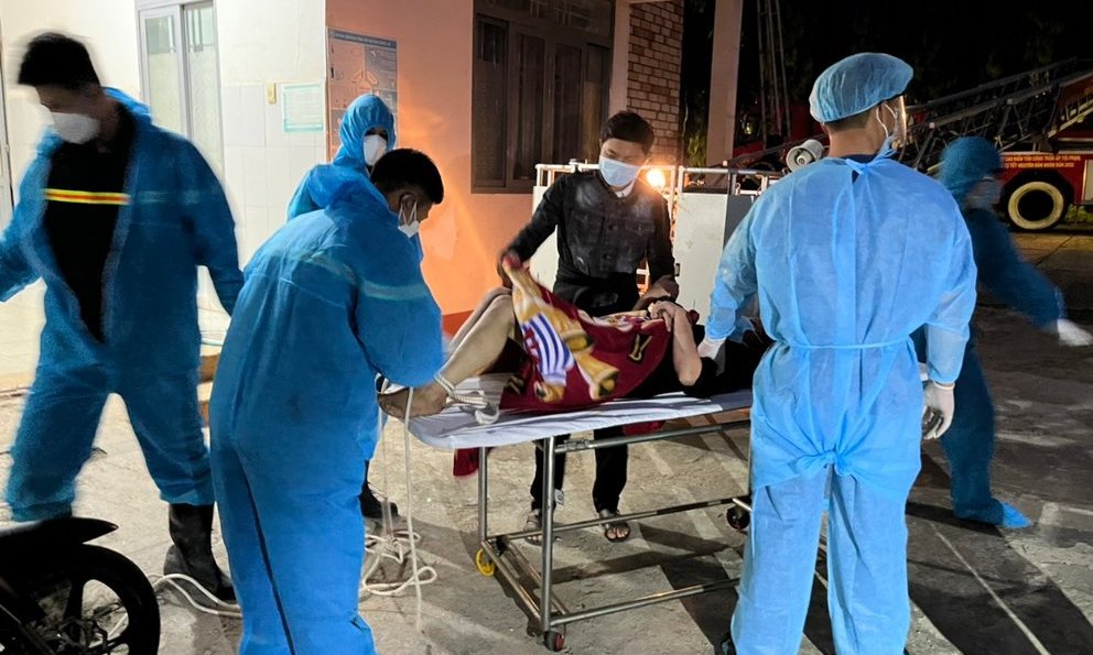 "Nữ bệnh nhân còn xé áo báo hộ, đòi cắn vào người chiến sĩ trong quá trình giải cứu. Bệnh nhân phản ứng rất mạnh, lo sợ bệnh nhân hoặc chiến sĩ có thể bị rơi xuống nguy hiểm tính mạng nên các chiến sĩ đã liên tục động viên. Nữ thai phụ đòi các chiến sĩ hát cho nghe mới cho giải cứu nên các chiến sĩ vừa bám vào dây cáp, vừa hát để trấn an và ôm chặt bệnh nhân đưa vào thang cứu hộ", lãnh đạo Đội CC& CNCH số 1 chia sẻ.