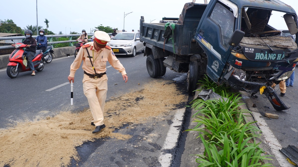 Nhận tin báo, lực lượng Cảnh sát giao thông Công an TP Đà Nẵng đã nhanh chóng có mặt để điều tiết giao thông và phối hợp xử lý hậu quả. Một xe tải chở cát được huy động đến rải lên mặt đường nhằm hạn chế trơn trượt do dầu loang để lại.