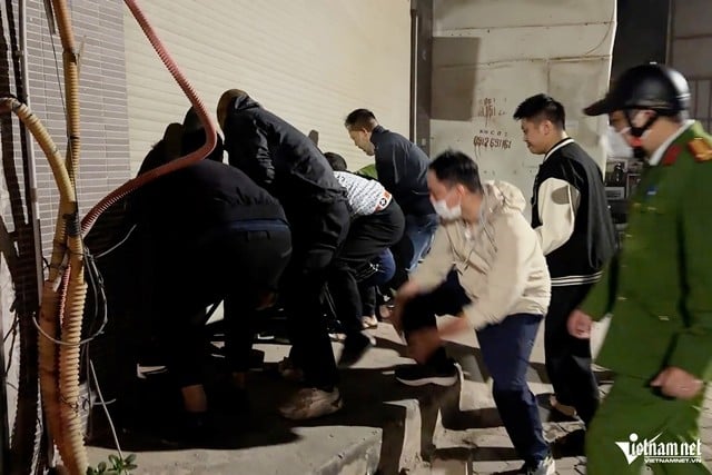Phát hiện sự việc, hàng chục người dân cùng lực lượng chức năng nhanh chóng tiếp cận, tìm cách phá cửa để giải cứu những người mắc kẹt. Ông Phạm Văn Đức, một trong những người trực tiếp tham gia phá cửa, cho biết nhiều thanh niên đã dùng xà beng, thanh sắt cạy cửa, sau đó hợp sức nâng cửa cuốn lên.