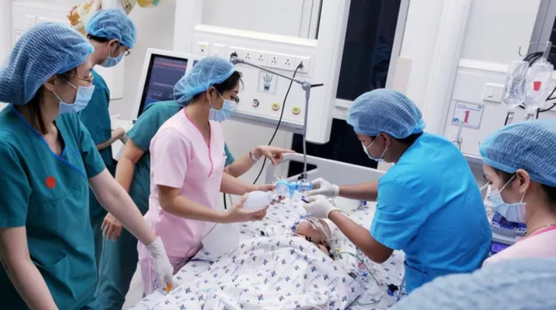 Ê-kíp của ca đại phẫu thuật gồm hơn 60 bác sĩ, điều dưỡng và nhân viên Bệnh viện Nhi đồng Thành phố (TP.HCM) phối hợp cùng 30 chuyên gia từ các bệnh viện và trung tâm lớn trên cả nước như Bệnh viện Nhi đồng 1, Bệnh viện Nhi đồng 2, Bệnh viện Chợ Rẫy, Bệnh viện Chấn thương Chỉnh hình, Bệnh viện Mắt, Bệnh viện Xuyên Á, Đại học Y dược TP.HCM.