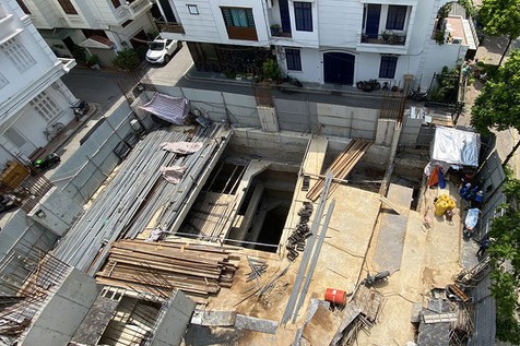 Quá trình xây dựng, việc thi công 4 tầng hầm phải đào sâu hơn 13 m khiến các hộ dân sống kế bên công trình lo ngại.