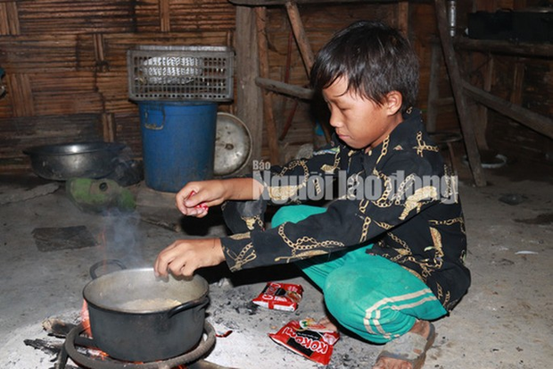 Em Giàng Thị Say (14 tuổi, học lớp 6, con bà Súa), cho biết gia đình có 7 anh chị em. Hai chị lớn đã lấy chồng, chị thứ 3 cùng cha mẹ lên rẫy mấy ngày qua nên 4 chị em nhỏ ở nhà. Mỗi đợt, cha mẹ thường đi làm rẫy khoảng 4-5 ngày mới về. Trước khi đi làm, mẹ giao cho em từ 50.000 đồng đến 100.000 đồng để ở nhà lo cho các em ăn uống. "Những ngày cha mẹ đi làm, em không nấu ăn mà chỉ mua mì tôm về pha cho các em ăn ngày 3 bữa. Số tiền dư, thỉnh thoảng em cho mỗi em 2.000 đến 3.000 đồng để khi đi học các em mua kẹo" - em Say kể.