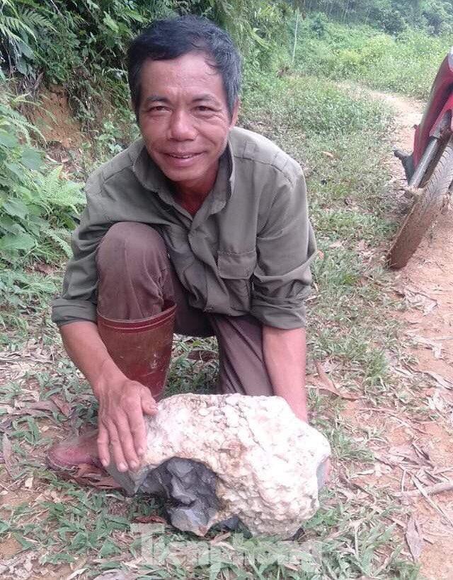 Ông Hinh với "Thiên thạch quý" rơi từ trên trời được lan truyền chóng mặt trên mạng xã hội. Ảnh: Duy Chiến