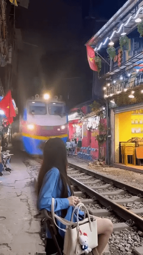 Những ngày gần đây, mạng xã hội xuất hiện đoạn clip ghi lại cảnh một cô gái ngồi ngay sát đường ray tại khu phố cà phê đường tàu Hà Nội. Khi đoàn tàu tiến gần với tốc độ cao, người này vẫn bình thản tạo dáng chụp ảnh, chỉ đến lúc tàu áp sát mới vội đứng dậy lùi ra phía sau.