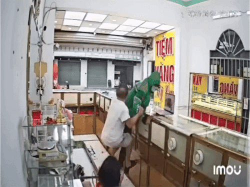 Theo nội dung clip lan truyền, một người đàn ông với trang phục thường thấy của tài xế xe ôm công nghệ đã bất ngờ xông vào một tiệm vàng. Đối tượng này tỏ ra manh động, dùng vũ lực nhằm khống chế chủ tiệm để thực hiện hành vi cướp tài sản.