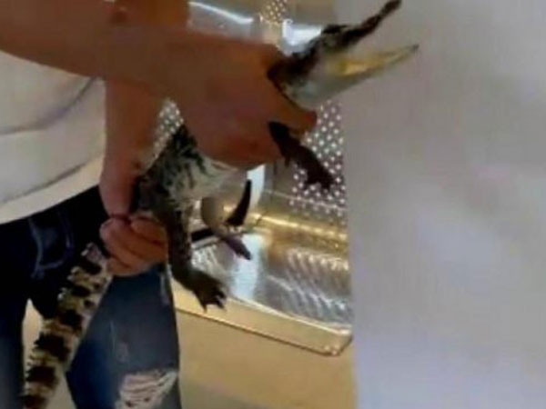 | Người đàn ông cầm con cá sấu còn sống đi trong khuôn viên bệnh viện ở Cần Thơ |