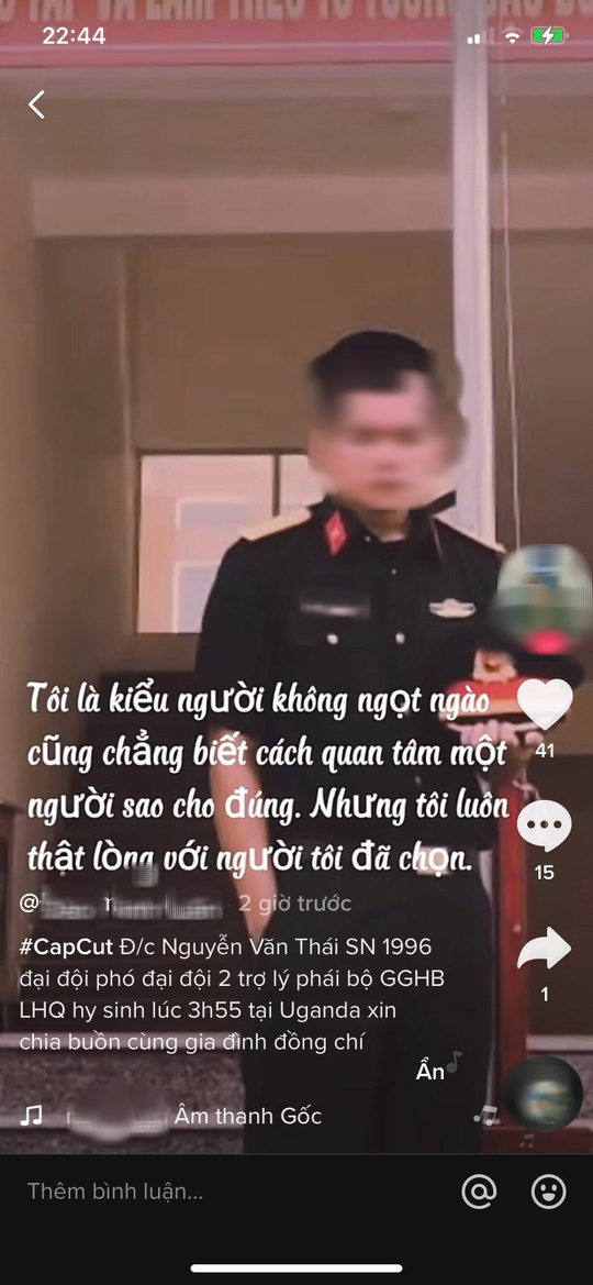 Trước đó, một tài khoản trên mạng xã hội TikTok tên Đ.M.T. đã đăng tải thông tin kèm hình ảnh: "Đ/c Nguyễn Văn Thái SN 1996 đại đội phó đại đội 2, trợ lý phái bộ GGHB LHQ hy sinh lúc 3h55' tại Uganda xin chia buồn cùng gia đình đồng chí".