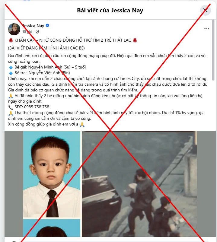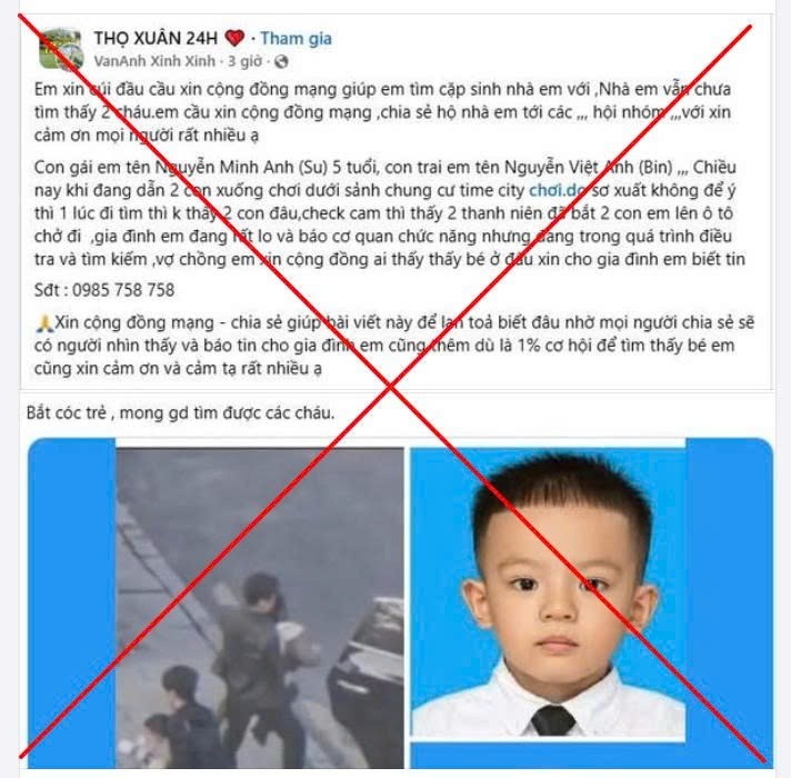 Những ngày gần đây, không gian mạng xôn xao trước các bài đăng với nội dung cảnh báo về một vụ bắt cóc nghiêm trọng xảy ra tại khu vực đô thị Times City (phường Vĩnh Tuy, quận Hai Bà Trưng, Hà Nội). Thông tin này cho rằng có hai cháu bé đã bị bắt cóc, gây ra tâm lý hoang mang, lo sợ tột độ cho nhiều bậc phụ huynh và cư dân trong khu vực.
