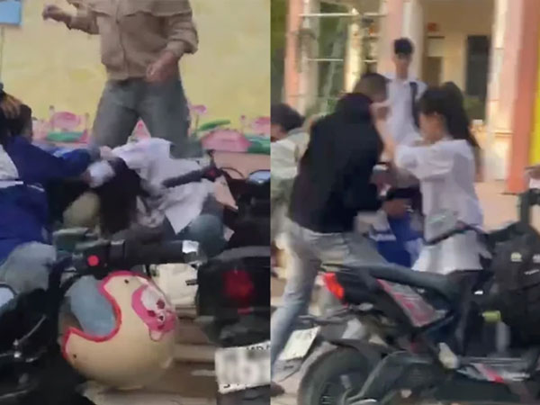 Theo video ghi lại, hai nữ sinh có hành vi xô xát ngay trong sân trường. Đáng chú ý hơn khi một nam thanh niên đến can ngăn thì bị một số nữ sinh túm lại, kéo người này ra để hai nữ sinh tiếp tục đánh nhau.