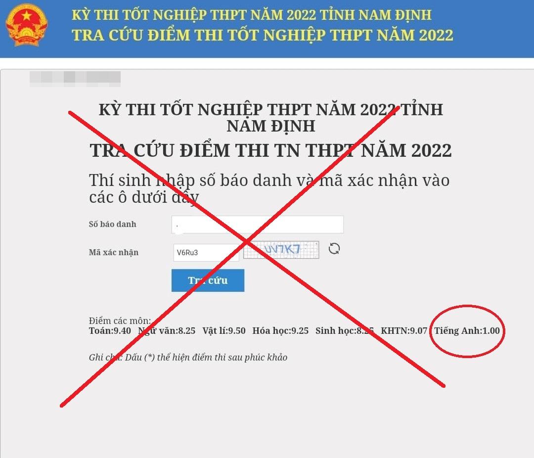 Người này cũng đăng kèm bức ảnh bảng điểm chưa che số báo danh. Khi tra cứu điểm thi trên trang thông tin điện tử của Sở Giáo dục và Đào tạo với số báo danh này, hệ thống thông báo "không tìm thấy thí sinh".