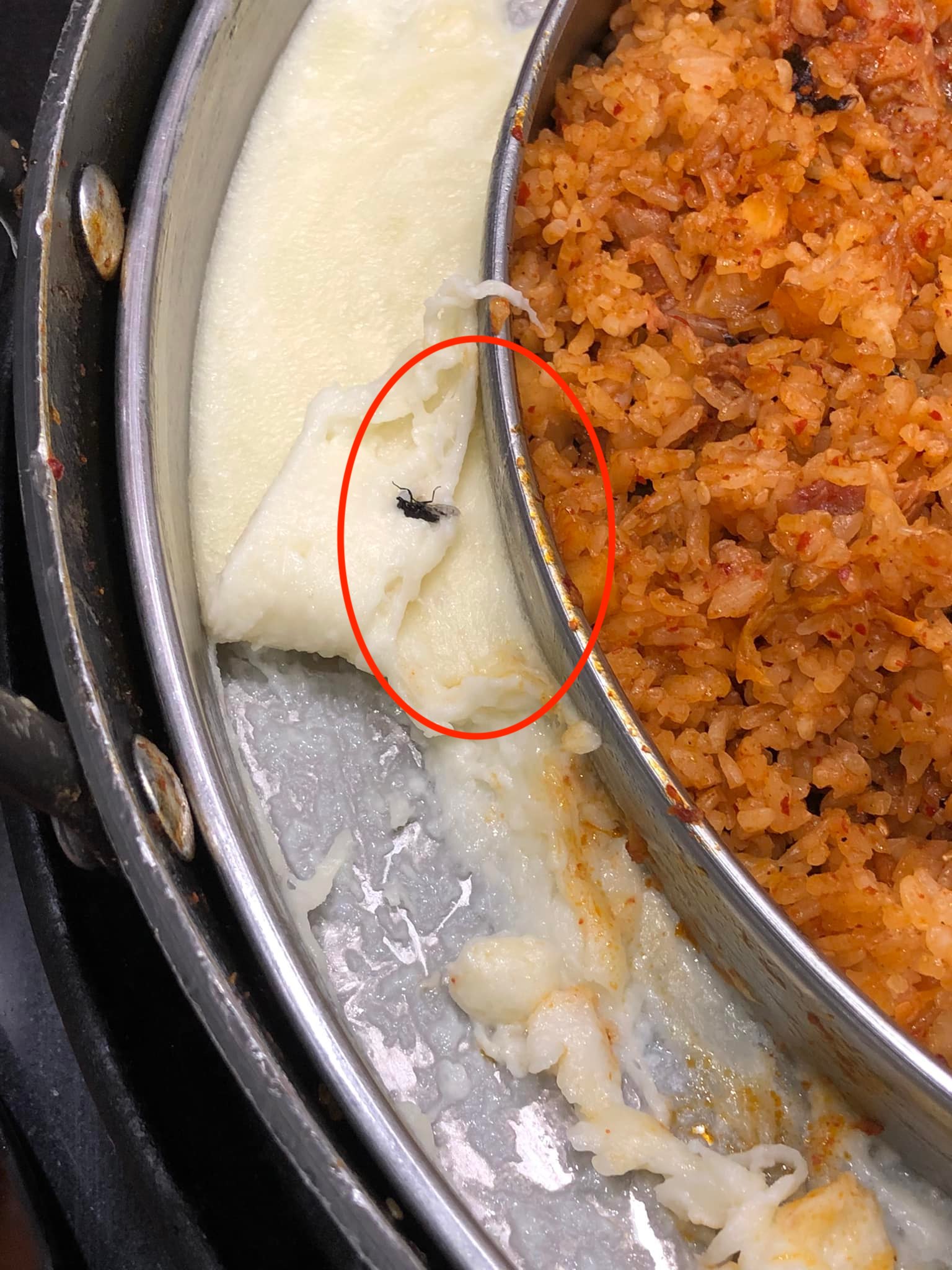 Một trường hợp khác, chủ tài khoản K.P. đang ăn cùng bạn thì phát hiện 1 con ruồi trong phần phô mai. Cô đã phản ánh ngay với nhân viên nhà hàng hôm ấy.