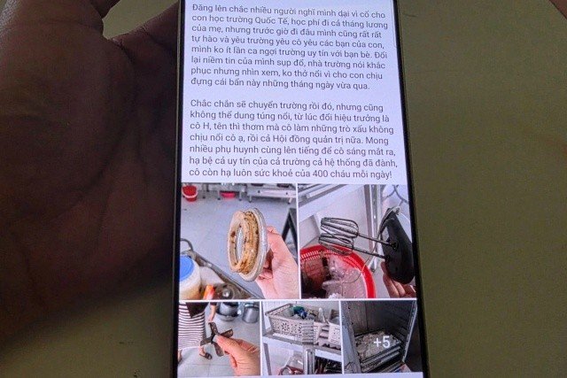 Theo nội dung đăng tải, hai phụ huynh cho biết họ đã trực tiếp ghi nhận hình ảnh tại khu vực chế biến thực phẩm và nhà vệ sinh của Trường Mầm non quốc tế M.B. UFO. Dù đã đóng đầy đủ các khoản học phí và chi phí bán trú, phụ huynh phản ánh rằng điều kiện thực tế tại trường khiến họ bất ngờ khi chứng kiến cách bố trí dụng cụ ăn uống và môi trường sinh hoạt của trẻ.