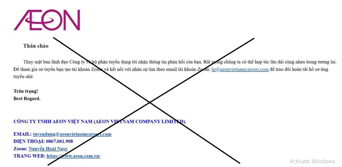 Không riêng AEON, một số thương hiệu lớn đang bị mạo danh, lừa đảo tuyển dụng.