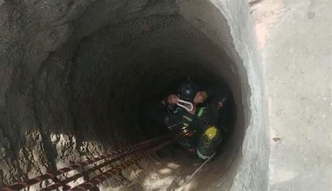 Sau 20 phút sử dụng bình dưỡng khí cùng các biện pháp nghiệp vụ, các lực lượng cứu hộ, cứu nạn đã đưa được thi thể bé T lên trên.