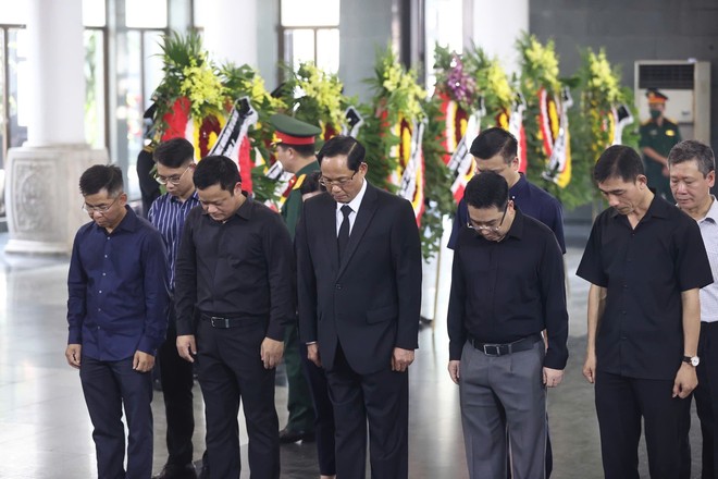 Tổng Bí thư, Chủ tịch nước Tô Lâm ; Thủ tướng Chính phủ Phạm Minh Chính; Chủ tịch Quốc hội Trần Thanh Mẫn; nhiều lãnh đạo, nguyên lãnh đạo Đảng, Nhà nước gửi vòng hoa kính viếng PGS Đặng Bích Hà - phu nhân Đại tướng Võ Nguyên Giáp .