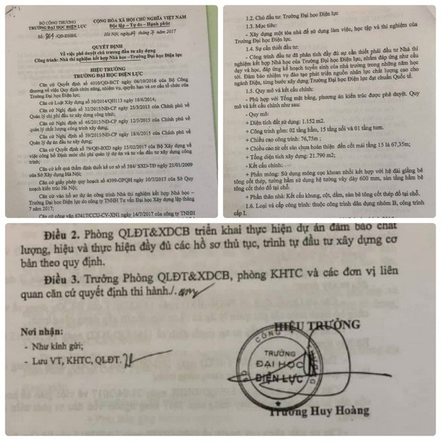 Trước đó, Báo Gia đình & Xã hội đã đăng tải loạt bài viết về việc phê duyệt chủ trương đầu tư xây dựng; phê duyệt điều chỉnh công trình thuộc dự án nhóm B thẩm quyền do Bộ trưởng Bộ Công thương quyết định nhưng ông Trương Huy Hoàng, Hiệu trưởng trường Đại học Điện lực đã tự ý làm thay.