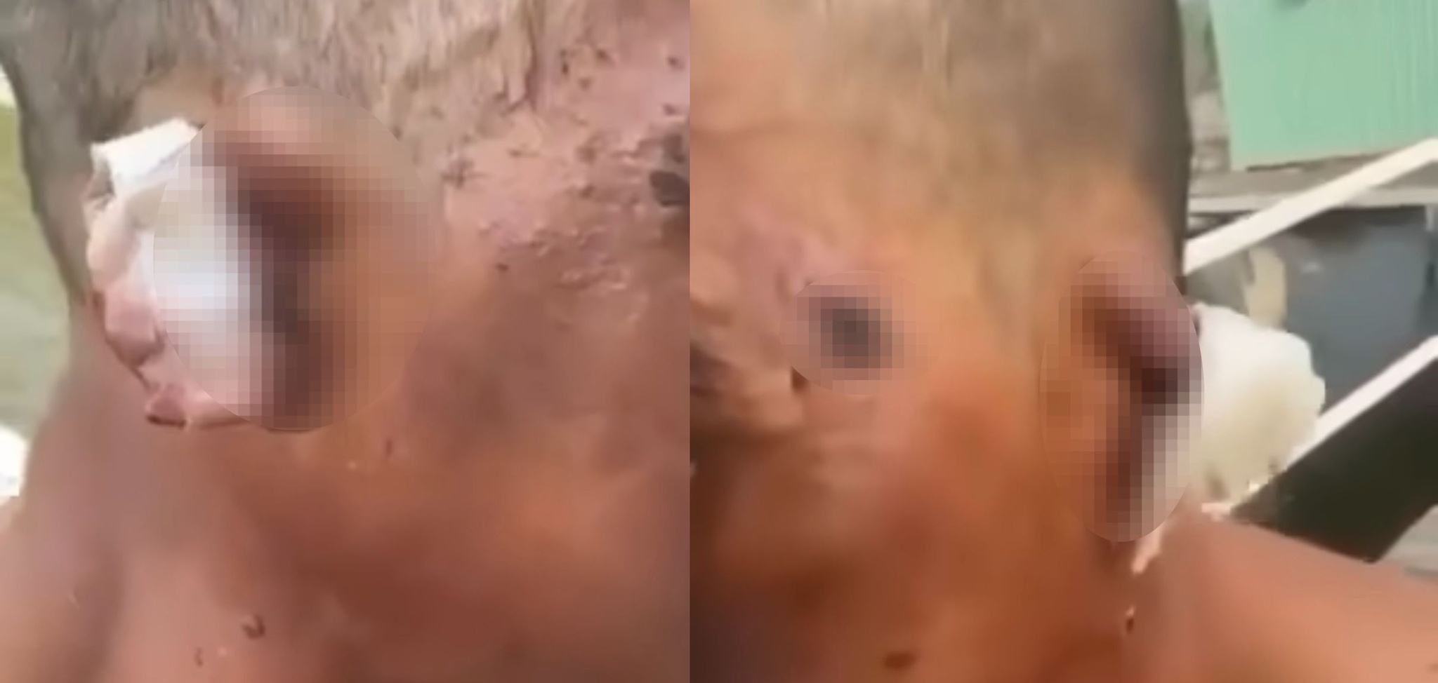 Cụ thể, người đàn ông này chỉ vào vết thương ở đùi phải và cho biết mình bị đổ nước sôi gây phỏng. "Tôi hơi yếu, làm chậm tay chút, làm không kịp với anh em thì nó hành hung, đánh đập tôi vậy đó", người đàn ông nói. Người này cho biết lý do 2 lỗ tai bị sưng: "Thấy tôi làm yếu, nói lấy roi cá đuối đánh, đánh bị dập thịt, rồi bắt ăn cá sống...".