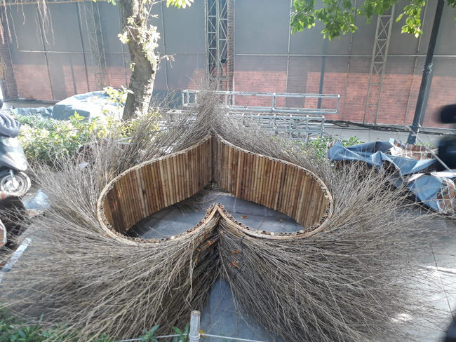 "Trái tim này là của người dân làng nghề mang tới, đang thi công để tối nay (11/12) bắt đầu đầu trưng bày Lễ hội văn hoá dân gian trong đời sống đương đại năm 2020. Nhưng mô hình này không được duyệt nên tối qua (10/12), người dân đã mang đi".