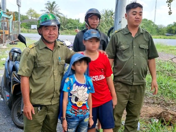 Khoảng 11h30 sáng nay, hai bé đã được tìm thấy khi đang ngồi nghỉ trên đường Võ Nguyên Giáp, (phường Phước Tân, thành phố Biên Hòa), cách nhà khoảng 45km.