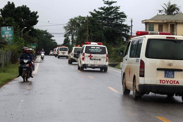 Sau khi tuyến đường Hồ Chí Minh nhánh Tây đã được thông, lực lượng cứu hộ cứu nạn đã di chuyển 13 thi thể cán bộ chiến sỹ tìm được ngày hôm qua về Bệnh viện Đa khoa tỉnh Quảng Trị.