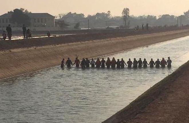 Dù thời tiết rất lạnh nhưng hàng trăm người vẫn có mặt tại các khúc sông Đào để cùng nhau lội xuống sông mò tìm cháu bé. Trên bờ, người dân đốt từng bếp lửa để sưởi ấm người phục vụ việc tìm kiếm.