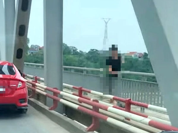 Anh H. đứng bám vào lan can cầu một lúc rồi buông tay, nhảy xuống sông Hồng trước sự can ngăn của mọi người.