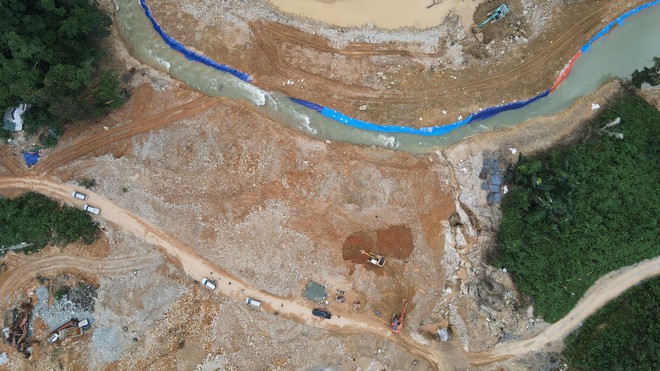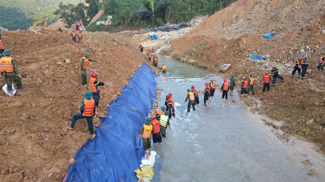 Theo đó, lực lượng cứu hộ - cứu nạn đã đắp một con đập để chặn dòng sông, đồng thời đào một đường dẫn mới với chiều dài hơn 120m, rộng 5m để nắn dòng sông chảy sang hướng khác để tiến hành tìm kiếm 12 nạn nhân còn mất tích tại khu vực dưới lòng sông.